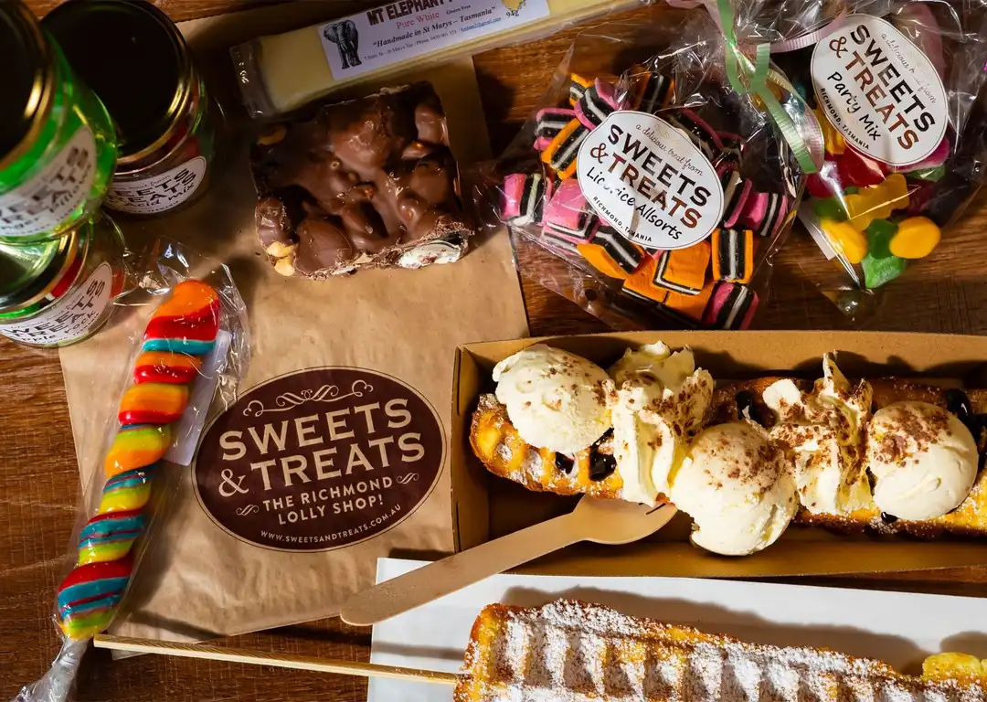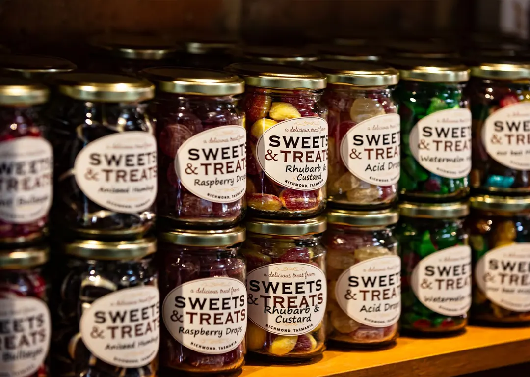 Sweets & Treats is an old-fashioned lolly shop in the historic village of Richmond. We have a huge range of sweets, from soft jellies and hard rock candy to chocolates, toffees, nuts, licorice, coconut ice and more. Our shop is just like the shops from your childhood – our lollies are displayed in rows and rows of glass jars and cheerfully weighed out by our friendly staff.